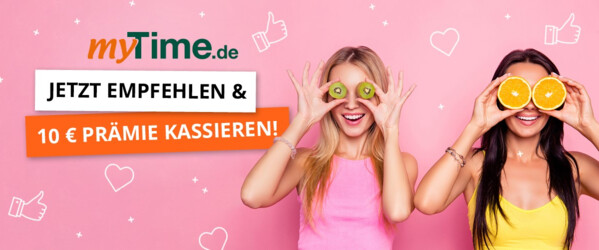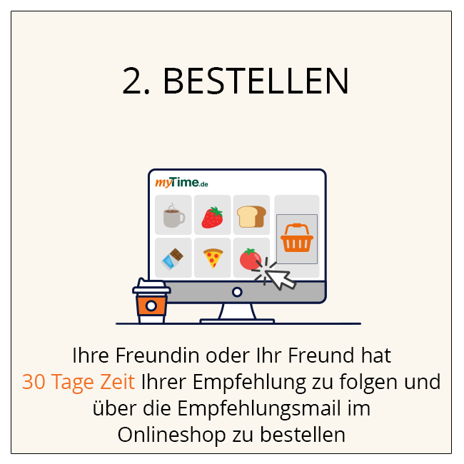Ihre erfolgreiche Empfehlung ist viel wert. Empfehlen Sie Ihren Freunden und Bekannten myTime.de weiter und Sie erhalten pro erfolgreiche Empfehlung einen Einkaufsgutschein in Höhe von 10 Euro für Ihre nächste Bestellung ab 50 Euro bei myTime.de.