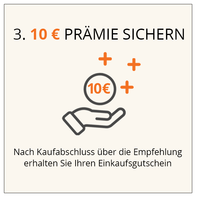 Ihre erfolgreiche Empfehlung ist viel wert. Empfehlen Sie uns Ihren Freunden und Bekannten weiter und Sie erhalten pro erfolgreiche Empfehlung einen Einkaufsgutschein in Höhe von 10 Euro für Ihre nächste Bestellung ab 50 Euro bei uns. Eine Auszahlung des Gutscheins ist nicht möglich.